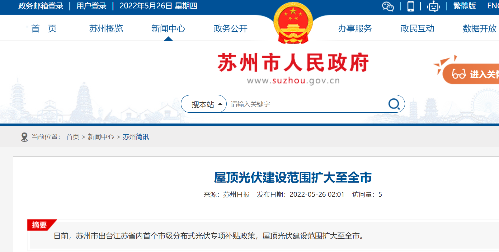 日前,蘇州市出臺江蘇省內首個市級分布式光伏專項補貼政策,屋頂光伏建設范圍擴大至全市。