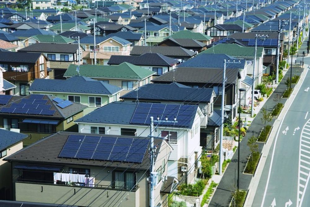 (每家每戶屋頂上裝著光伏板)