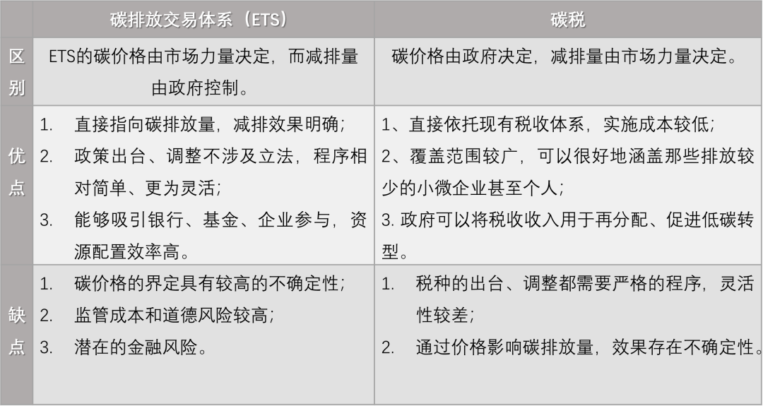 表:碳交易(ETS)與碳稅的特點(diǎn)歸納