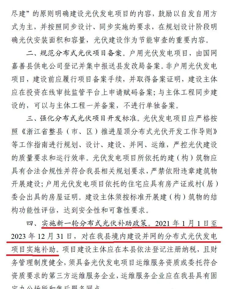 2021年1月1日至2023年12月31日,對在我縣境內(nèi)建設(shè)并網(wǎng)的分布式光伏發(fā)電項目實施補助。
