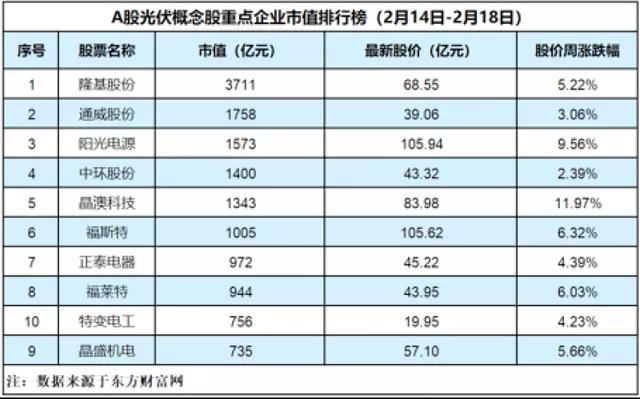 一改上周的低迷態(tài)勢,本周(2月14日-2月18日)光伏設(shè)備板塊上漲5.46%,其中,漲幅最高的是晶澳科技,一周上漲了11.97%,第二是陽光電源,漲幅為9.56%,福斯特、福萊特的漲幅都在6%以上。