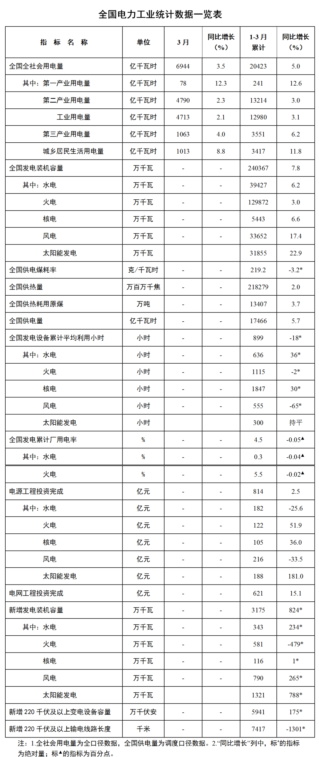 4月20日,國(guó)家能源局發(fā)布1-3月份全國(guó)電力工業(yè)統(tǒng)計(jì)數(shù)據(jù)。
