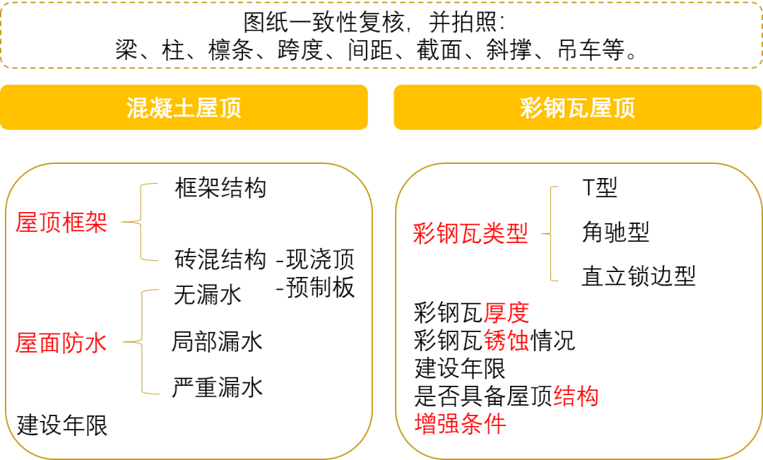 · 考察屋面結(jié)構(gòu)(混凝土、彩鋼瓦)、屋頂使用年限和面積(至少2萬(wàn)平米以上)。
