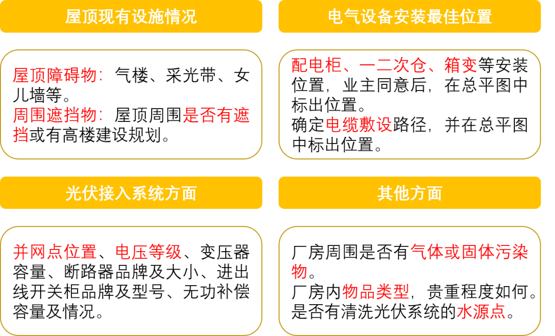 在項(xiàng)目開(kāi)發(fā)的前期工作中,企業(yè)需通過(guò)實(shí)地勘察,搜集屋頂相關(guān)資料,為后續(xù)方案設(shè)計(jì)和投資收益分析做準(zhǔn)備。