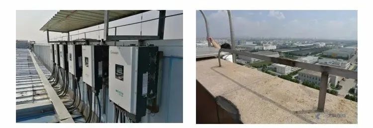 a:逆變器的PE接地與防雷帶直接連接在一起。