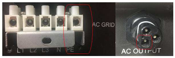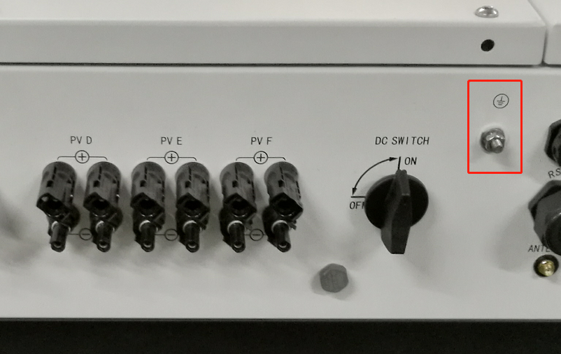 逆變器機(jī)身的右下方側(cè)有一個接地孔用于重復(fù)接地,保護(hù)逆變器和操作人員的安全。